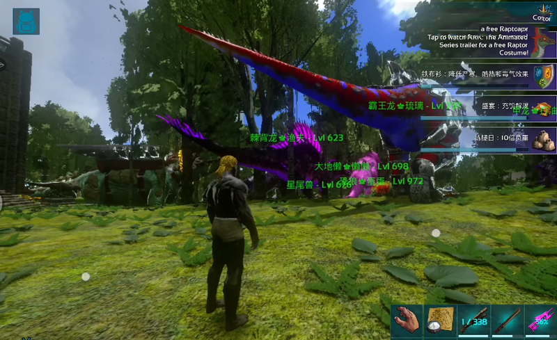在这个世界有着大量的恐龙以及史前生物,捕获以及驯服他们是一个挑战性的任务,首先不断攻击它们削弱他们的能力,然后开始驯服,给予他们适当的食物,一旦这些生物被驯服,他们可以成为你忠心的宠物,宠物可以升级以及需要消耗食物,飞行的生物可以令玩家飞行,而强大的恐龙则是攻击敌人的利器。