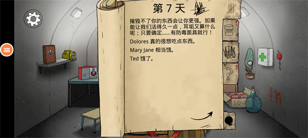 在避难所的生存也充满了艰难:你要兼顾家人的温饱以及健康合理分配罐头和水,还需冒着受伤和死亡的风险外出搜集物资!每天都可能会有恶劣的突发事件发生,需要你在坏和更坏的选项中做出抉择。