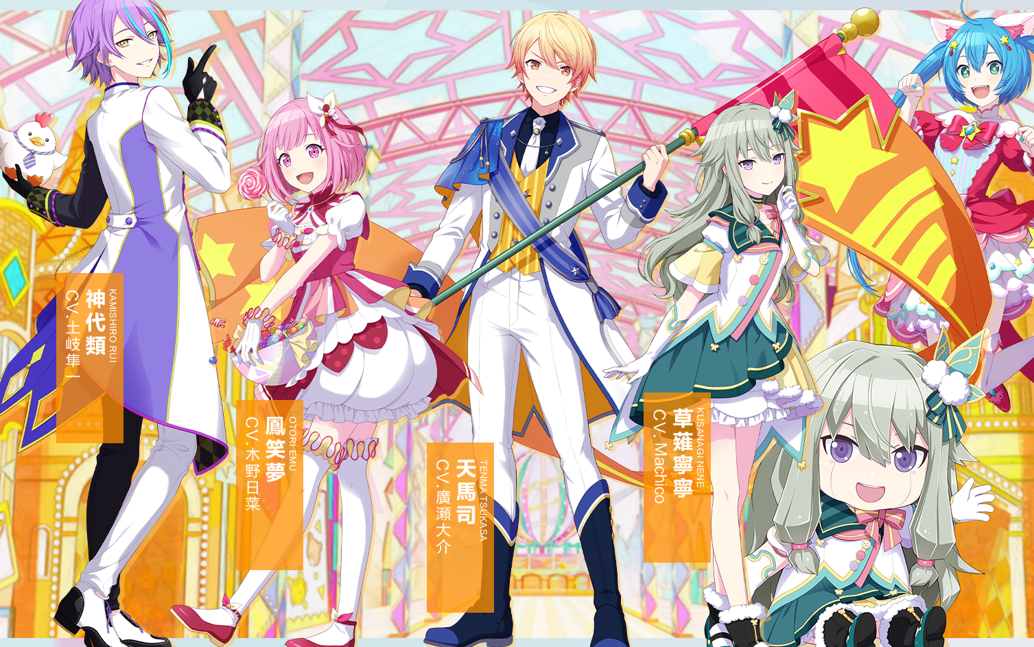 和初音未来、镜音连、镜音铃、巡音流歌、MEIKO、KAITO六位虚拟歌手一起,享受现实世界和「世界」两个不同舞台的故事吧!