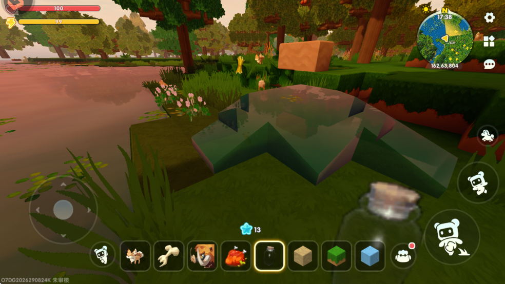 2、制作好小玻璃瓶后,点击物品,然后走到水域旁边,点击水域使用