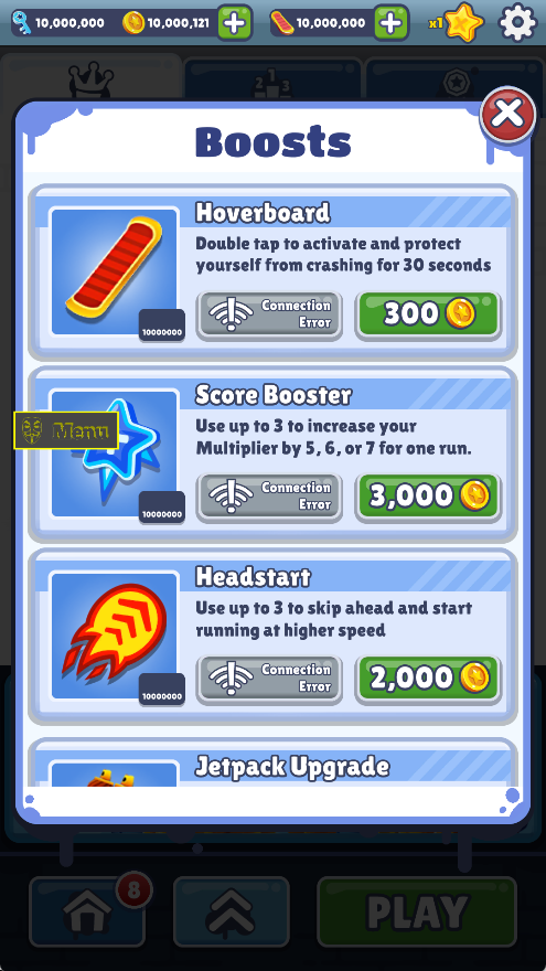 首先说一下跑分,想跑高分最最最重要的就是活下去,那么什么东西能保住我们的狗命呢?喷射器和滑板,一个无敌一个名刀,能最大限度保住你的狗命。