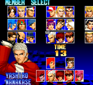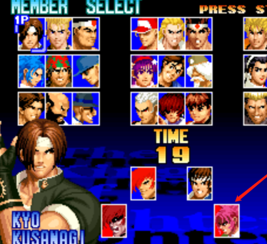 2、选出觉醒丽安娜后,选人画面时,按住Start键,↑←↓→↑↓ BC。这时候真大蛇队就出现了,进行选择即可