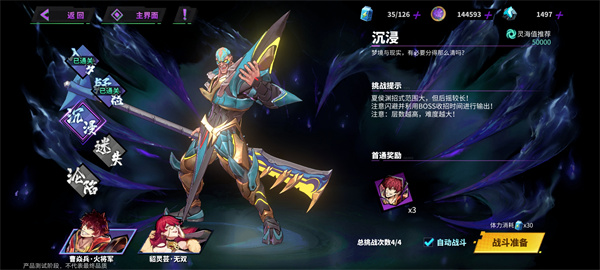 ✦【恶体魔境】当挑战BOSS成功后可以获得曹焱兵·火将军/貂灵芸·无双的角色碎片(只可获得首通奖励,无法重复挑战)