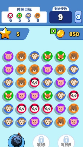 超能消除是一款以动物为主题的消除闯关游戏。进入关卡后,屏幕上会出现各式各样的动物徽章,玩家需要通过连线的方式将相同图案的动物徽章连接起来,只要串联起至少三个相同的徽章就能完成消除。每个关卡都设有特定的消除数量目标和步数限制,充满了挑战性,赶紧来锻炼你的观察力吧!