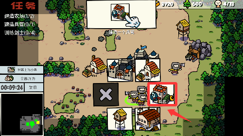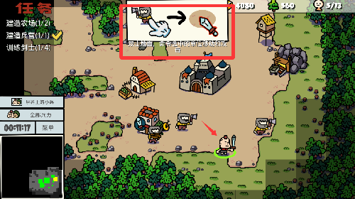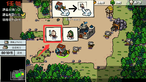 2、点击刚刚建好的兵营来生产一个剑士出来。