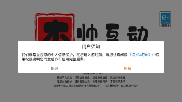 1.在进入游戏前,你需要先同意相关的隐私政策。