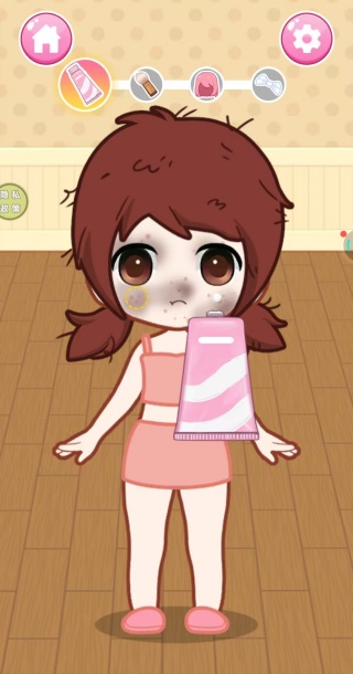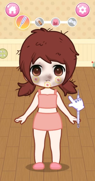 1、进入游戏,准备清洁小女孩,首先用针挑破痘痘;