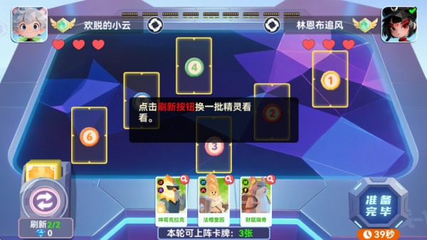 1、进入游戏,点击开始对决,快速的为你匹配对手,战斗之前,可以从卡组随机三张卡牌。