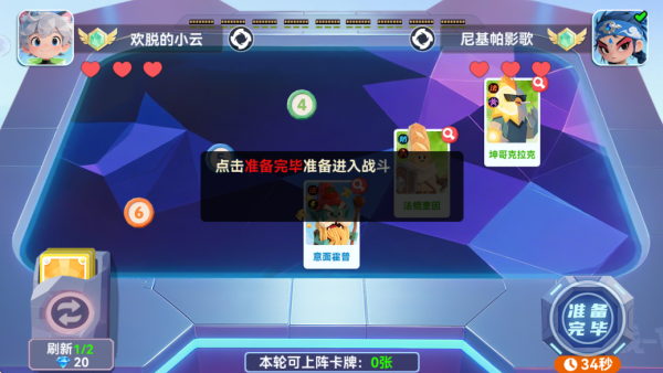3、按住第一张卡牌到达指定的位置,按照顺序放置卡牌,点击准备完毕即可战斗。