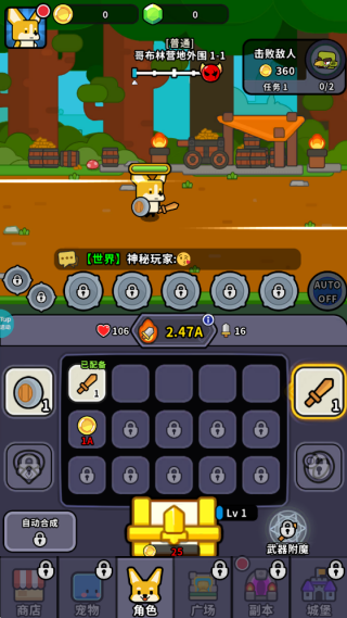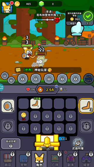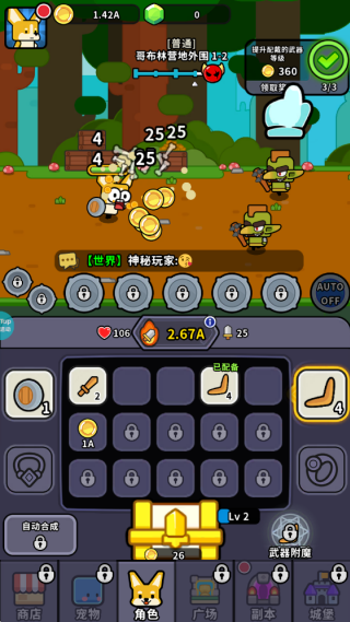 1、进入游戏,勇者被恶龙抓走了,我们必须拯救他,前方哥布林打算阻止我们,然他们看看柴柴的厉害。