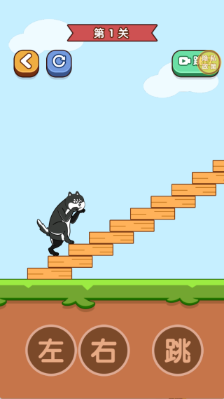 1、包含多个游戏,狗狗上楼梯需要控制左右以及跳跃按键,让小狗登上楼梯。