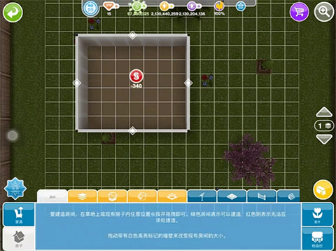 7、在格子上长按并拖拽出你需要的房间大小即可,建造好房间大小后你还可以在商店中购买各种装饰品装修房间