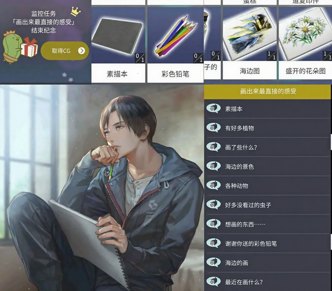 获得CG前会收到一个晴人送给你的包裹,里面是一张雏菊画,海边的风景画和CG达成条件无关,但是他也会送。