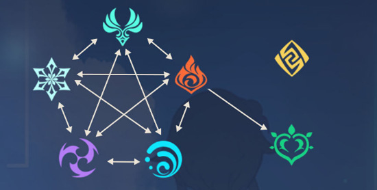当这些元素两两相撞,就会造成元素反应了,目前已知的各种元素反映分别是:超载、超导、感电、扩散、融化、蒸发、结晶、燃烧