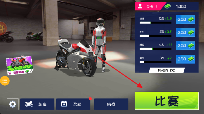 1、打开超级摩托车驾驶游戏,进入游戏后点击比赛。