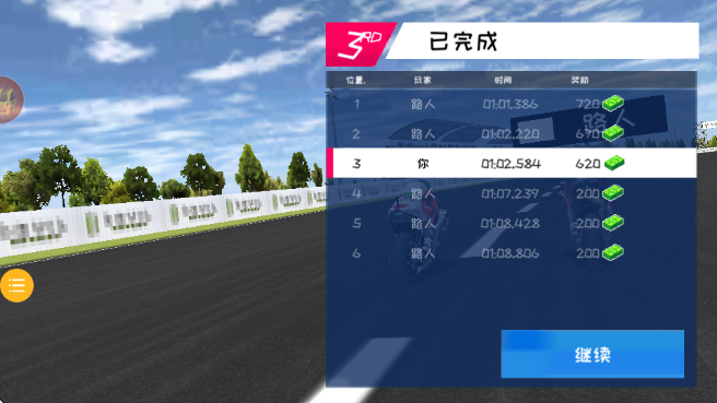 4、玩家必须掌握摩托车操纵方法,运用漂移过弯,提升赛事的名次。
